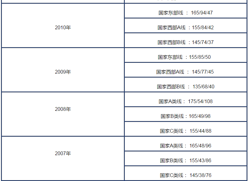由于全國(guó)各地的經(jīng)濟(jì)、文化和發(fā)達(dá)程度的不同,國(guó)家對(duì)MBA 錄取分?jǐn)?shù)線的制定分了等級(jí)。