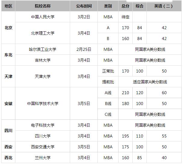 2019年全國(guó)34所MBA自主劃線院校復(fù)試線匯總