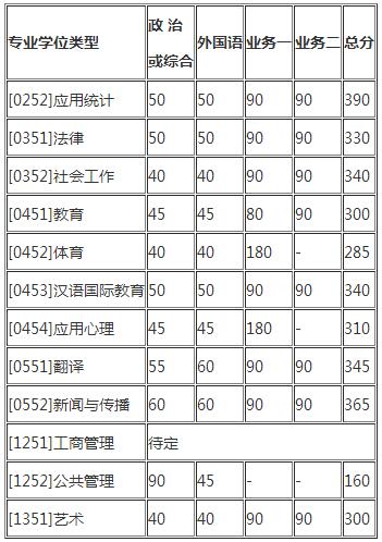 二、學(xué)校復(fù)試基本分?jǐn)?shù)線(專業(yè)學(xué)位類)