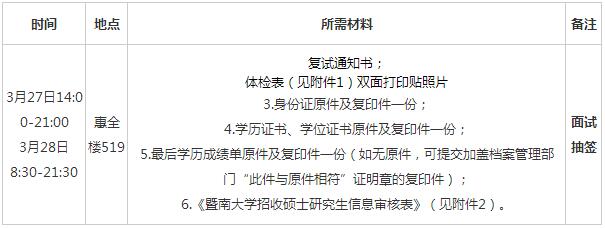 注:1.請登錄學(xué)校研招辦的網(wǎng)站:http://enroll.jnu.edu.cn/enroll-md/index.do下載復(fù)試通知書。(報名號作為用戶名,身份證號作為密碼,點擊打印,每完成一個項目蓋章都需確認(rèn),4月1日前交回學(xué)院。)