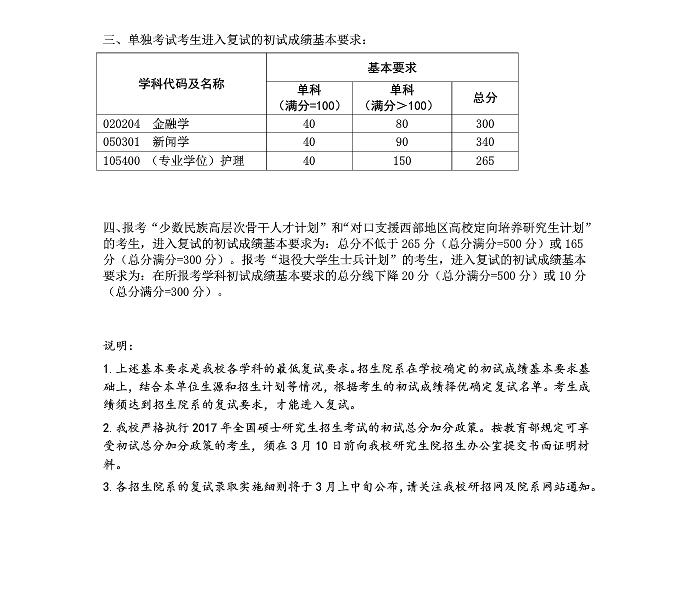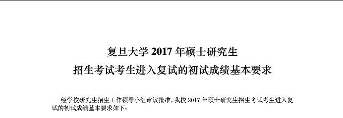 復(fù)旦大學(xué)2017年碩士研究生招生考試考生進(jìn)入復(fù)試的初試成績基本要求 點(diǎn)擊查看