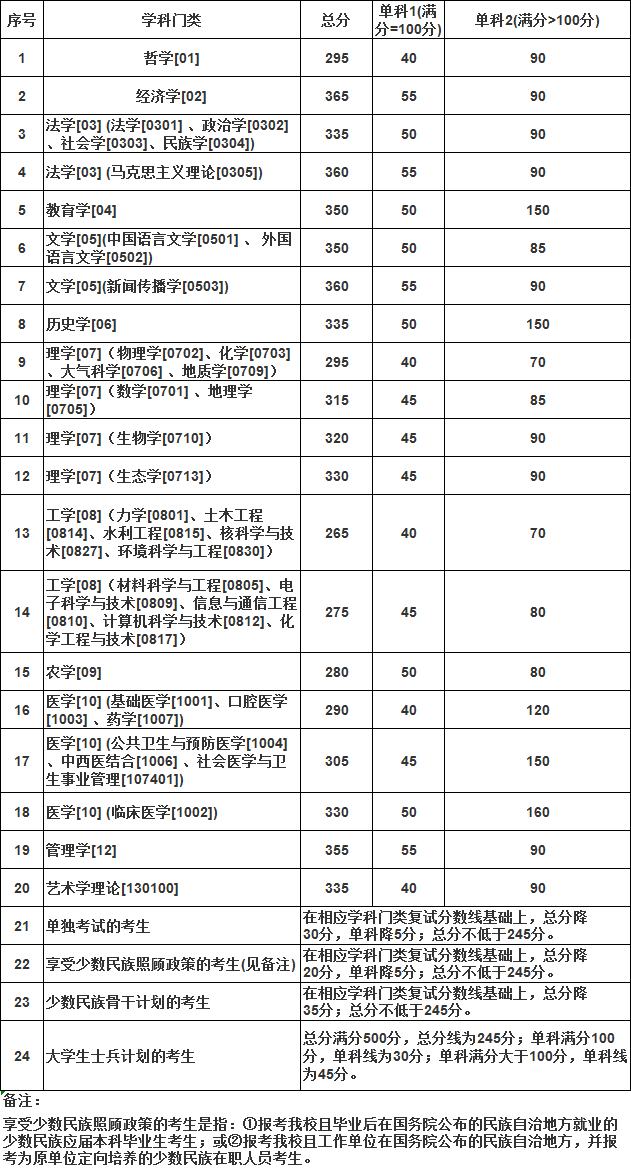 蘭州大學(xué)2019年碩士研究生招生復(fù)試分?jǐn)?shù)線(學(xué)術(shù)學(xué)位)