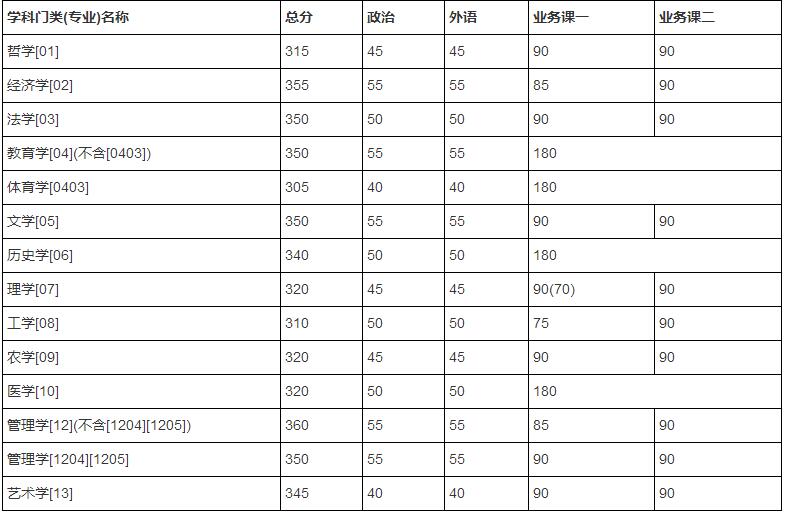 吉林大學2019年碩士研究生招生考試考生進入復試的初試成績基本要求