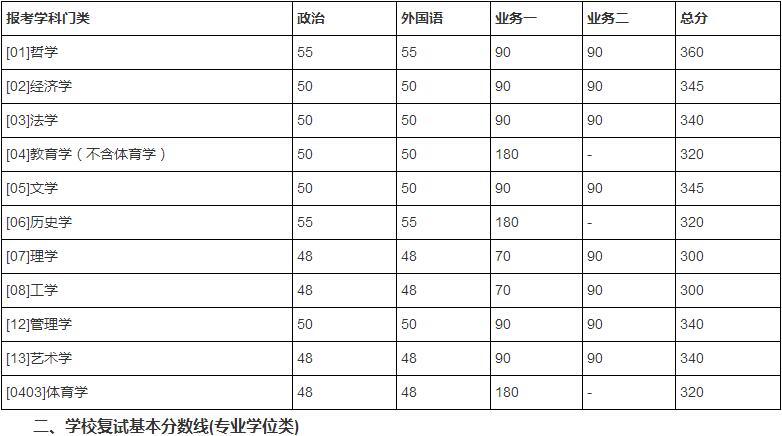 一、學(xué)校復(fù)試基本分?jǐn)?shù)線(學(xué)術(shù)學(xué)位類)