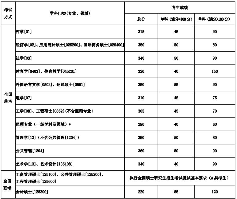 1、統(tǒng)考生中工作單位在國務院公布的民族區(qū)域自治地方,即 5 個自治區(qū)、30 個自治州、119 個自治縣(旗),并報考為原單位定向就業(yè)的少數民族在職人員考生,可享受少數民族照顧政策,即在學校初試合格資格線基礎上總分降 10 分,單科降 5 分。2、各院(系)可在滿足學校初試合格資格線的基礎上,根據本院(系)生源和招生規(guī)模的實際情況,確定本院(系)各學科(專業(yè)領域)的復試線。3、*照顧專業(yè)(一級學科及領域):力學[0801]、 冶金工程[0806]、 動力工程及工程熱物理[0807]、 地質資源與地質工程[0818]、礦業(yè)工程[0819]、冶金工程[085205]、動力工程[085206]、礦業(yè)工程[085218]、安全工程[085224]。4、單獨考試考生進入復試的初試成績總分不低于 270 分,單科不低于 50 分。5、退役大學生士兵計劃全國統(tǒng)考考生執(zhí)行學校初試合格資格線基礎上總分降 10 分,單科降 5 分;管理類聯考考生執(zhí)行總分不低于 170 分,外國語不低于 42 分,管理類綜合不低于 84 分。6、少數民族高層次骨干人才計劃、對口支援計劃等專項計劃考生參加復試的初試成績基本要求另行公
