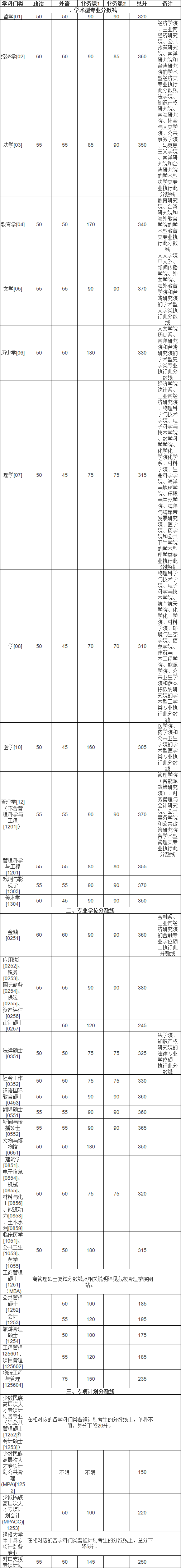 廈門大學(xué)2021年碩士研究生復(fù)試分數(shù)線院校動態(tài)