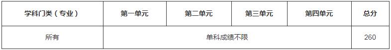 單科成績(jī)不限,總分不低于對(duì)應(yīng)統(tǒng)考的學(xué)科門類(專業(yè))學(xué)校分?jǐn)?shù)線的90%(四舍五入取整)。