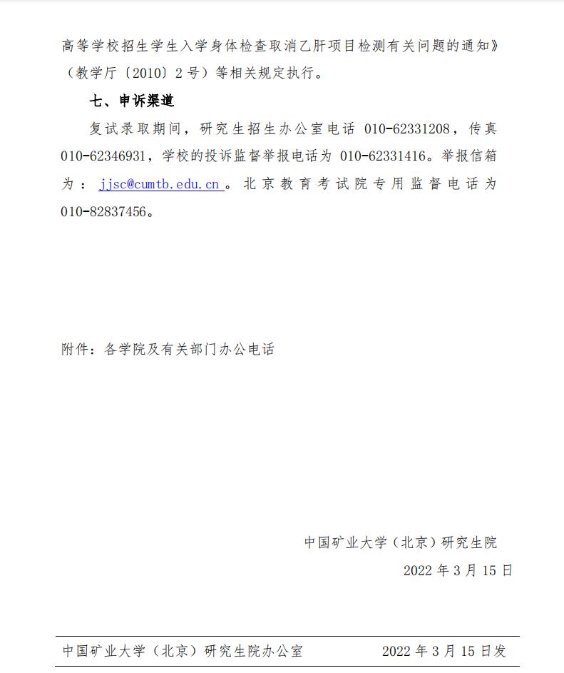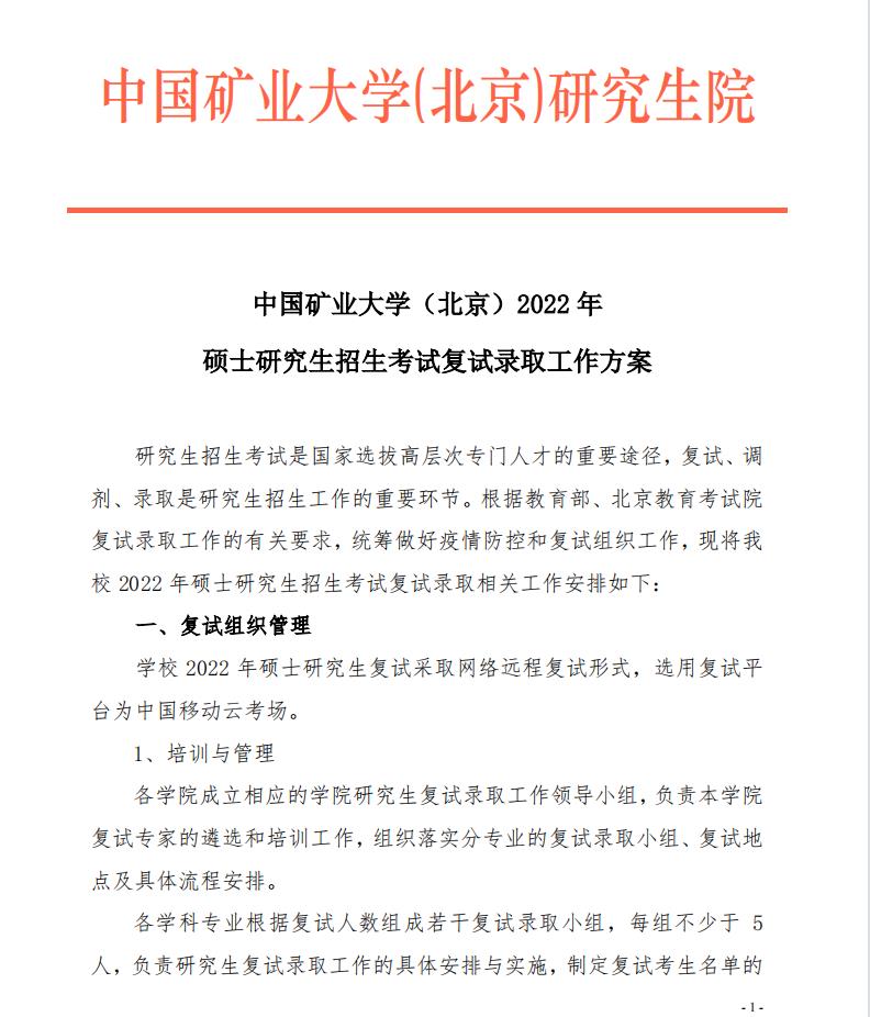 2022年中國礦大(北京)研究生復試方案院校動態(tài)