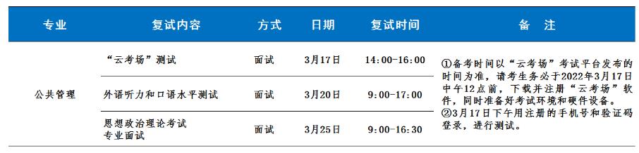 測試內(nèi)容:思想政治理論考試考核考生的思想政治理論基本知識、基本理論,以及運用馬克思主義的立場、觀點和方法分析和解決問題的能力。專業(yè)面試主要考察考生公共管理專業(yè)的基本理論以及實際應(yīng)用能力。