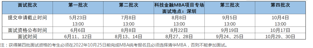 注:因?yàn)榻y(tǒng)考后不再組織面試,沒有通過提前面試獲得條件錄取資格的考生請(qǐng)不要在統(tǒng)考報(bào)名時(shí)報(bào)考清華MBA。