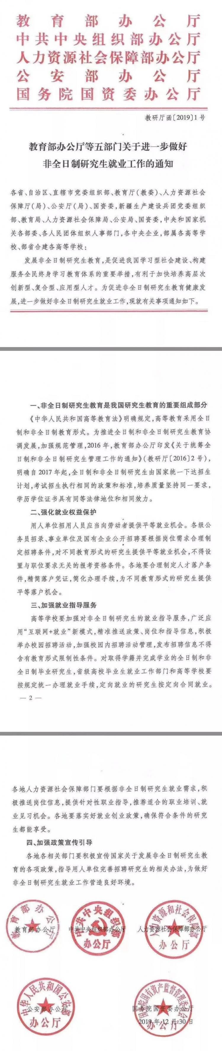 現在是非常時期,各部門工作都收到了影響,此時五部門聯(lián)合下發(fā)重磅文件,可以認為是國家層面對非全日制研究生獲取公平就業(yè)機會的最好支持。