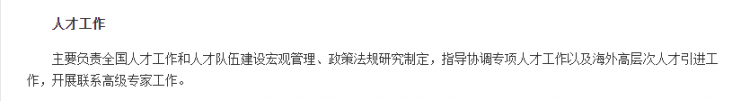 人力資源社會保障部是統(tǒng)籌機關企事業(yè)單位人員管理和統(tǒng)籌城鄉(xiāng)就業(yè)和社會保障政策的中國國家權力機構。具體職責太多,第一調劑網小編還是放涉及到人才的截圖。